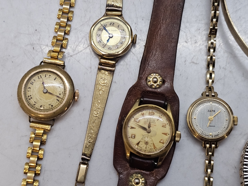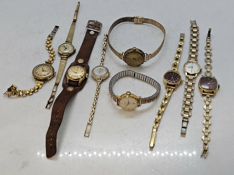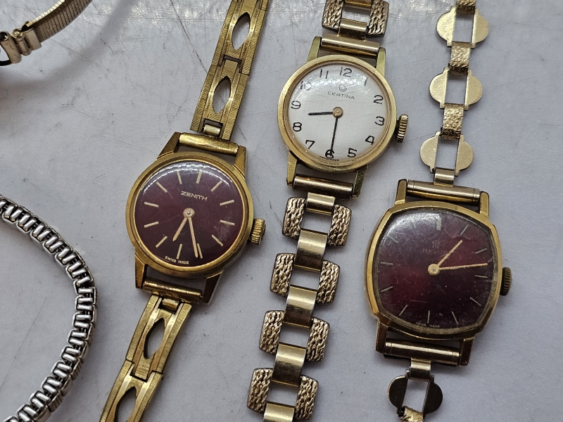 #1546 - 9kpl naisten vintage automaatti rannekelloja: Mm. Times Watch, Leijona, Zenith, Viso, Certina, Revue