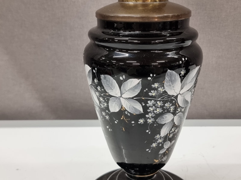 #1828 - 1800-luvun öljyvalaisin käsinmaalatulla lasirungolla