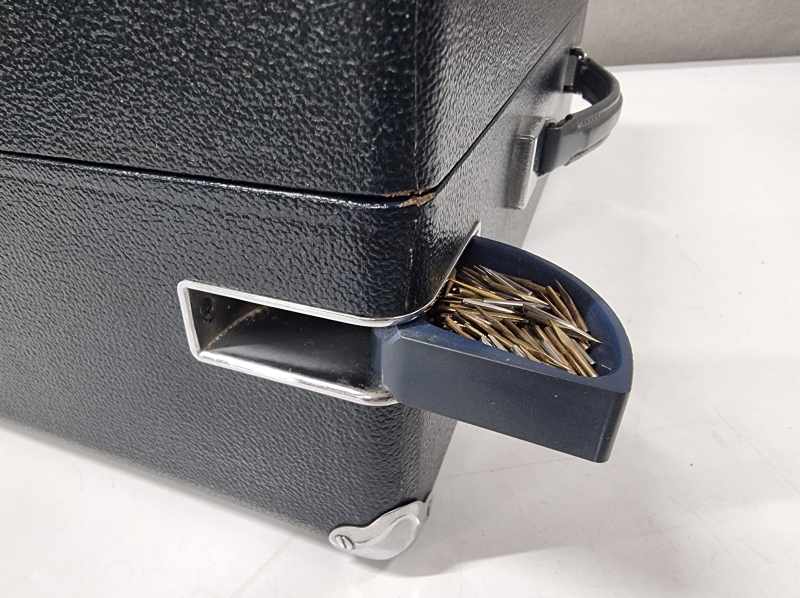 #1967 - Matkagramofoni His Masters Voice. Todella siistissä kunnossa. Neuloja mukana