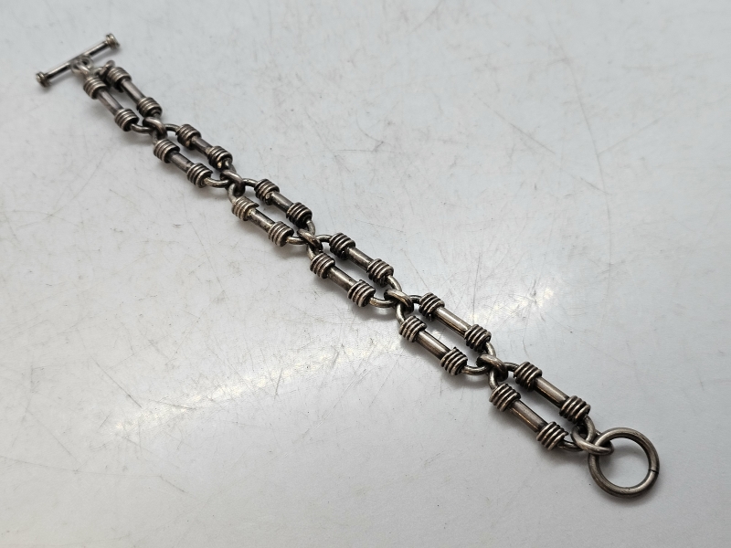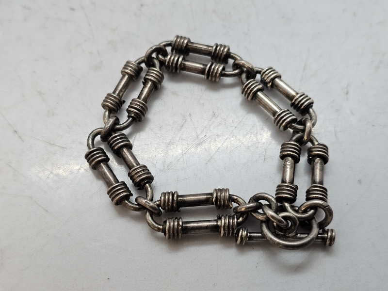 Paino 78g. Ei leimoja, testattu XRF-laitteella hopeaksi. Pituus 23cm