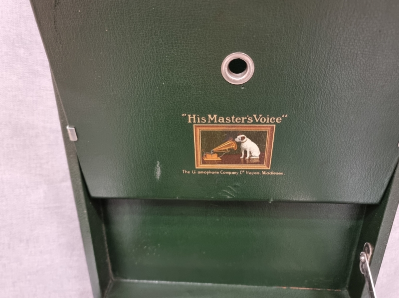 #2061 His Masters Voice matkagramofoni + paljon levyjä