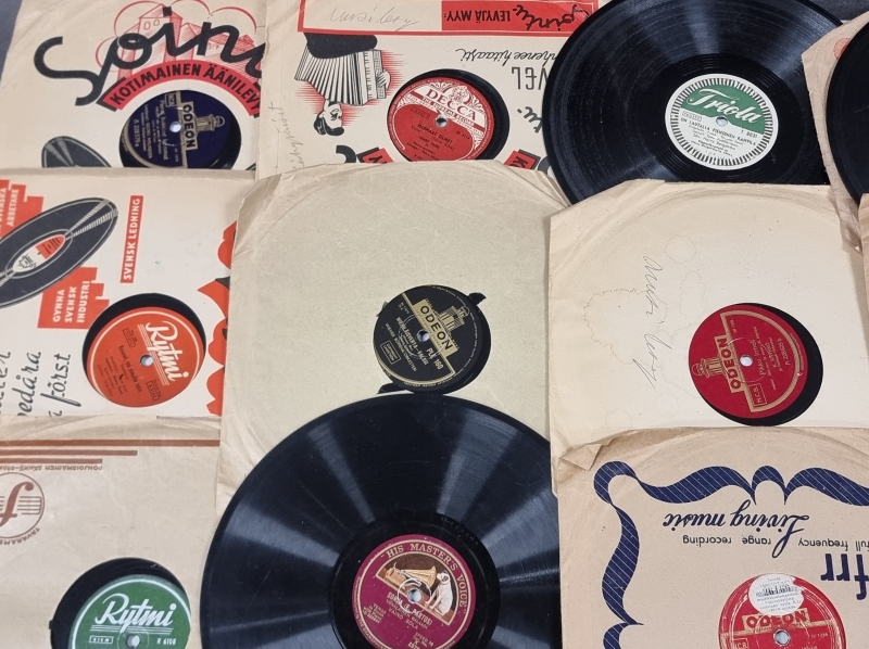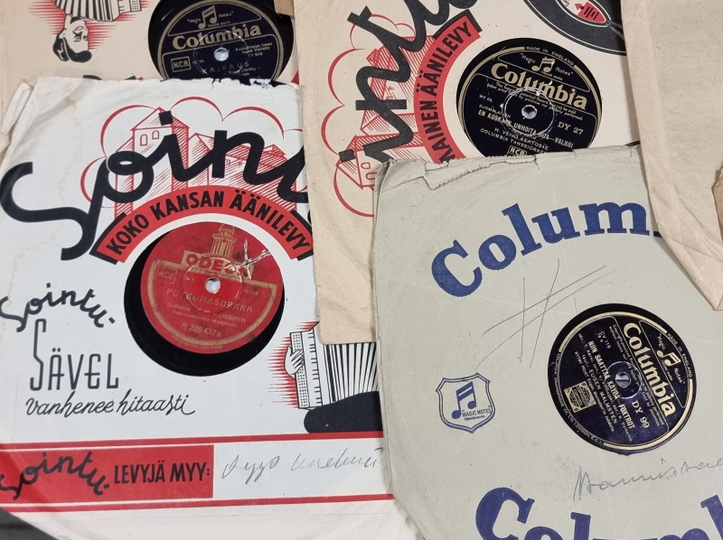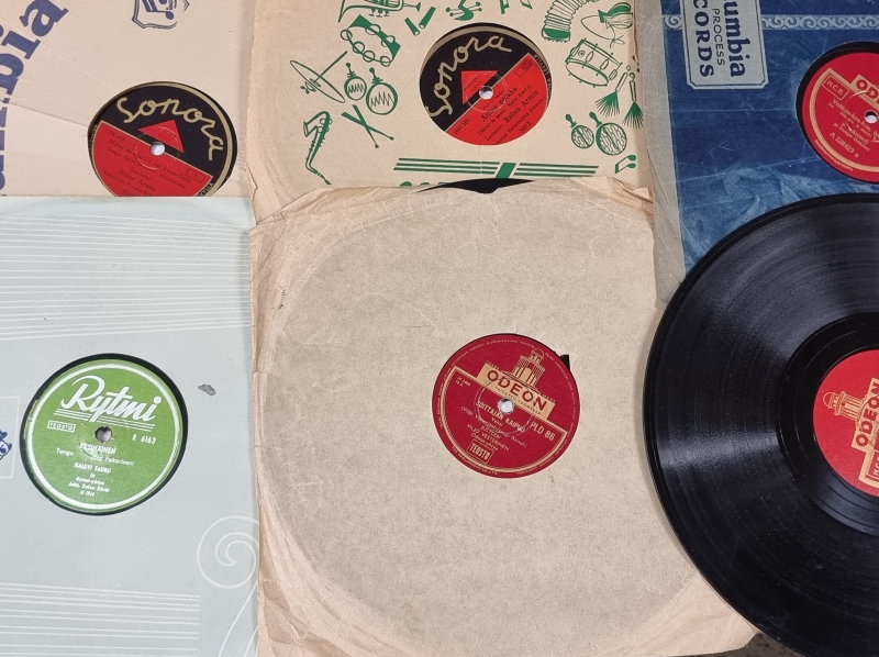 #2061 - His Masters Voice matkagramofoni + paljon levyjä