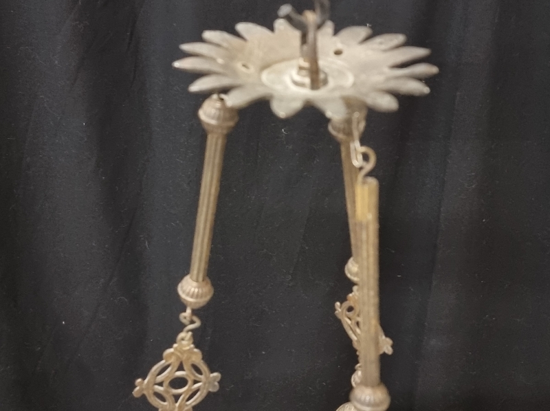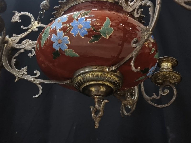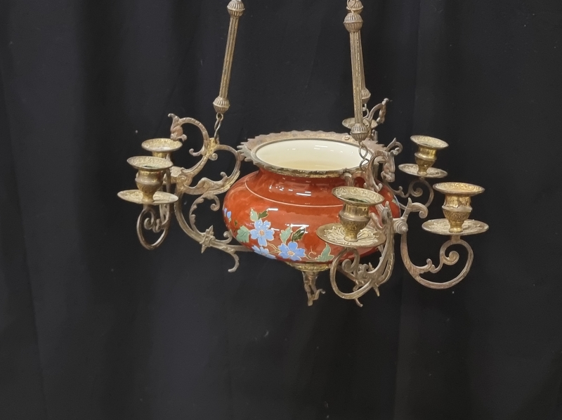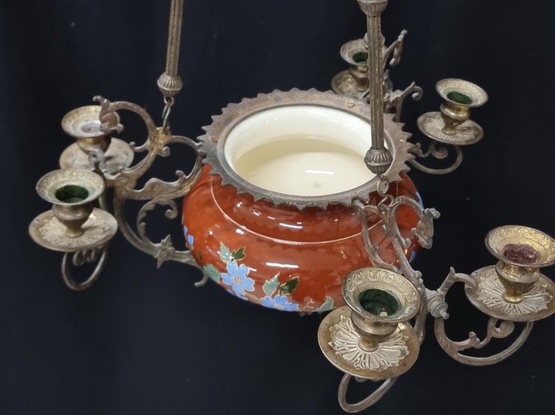 #2197 - Vanha kukka -amppeli kynttiläpaikoilla.