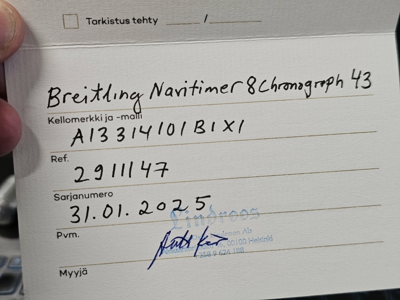 Mukana laatikko, alkuperäinen lisäranneke [nyt kiinni olevan arvo n. 1000e] ym. Ref: 2911147. Halkaisija 43mm. Alkuperäiset muovit vielä kiinni rungossa. Ostettu Suomesta kelloliikkeestä, takuu voimassa