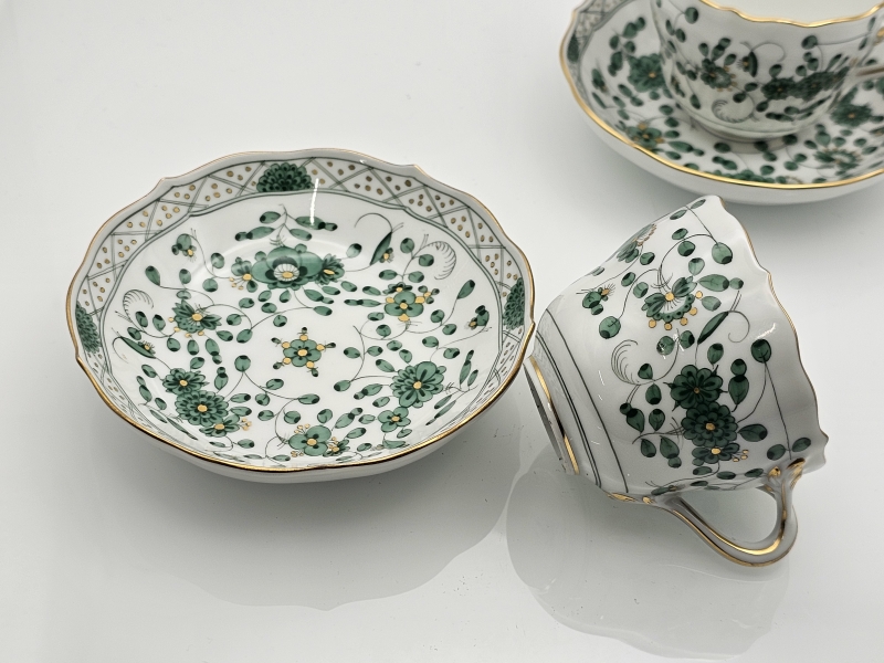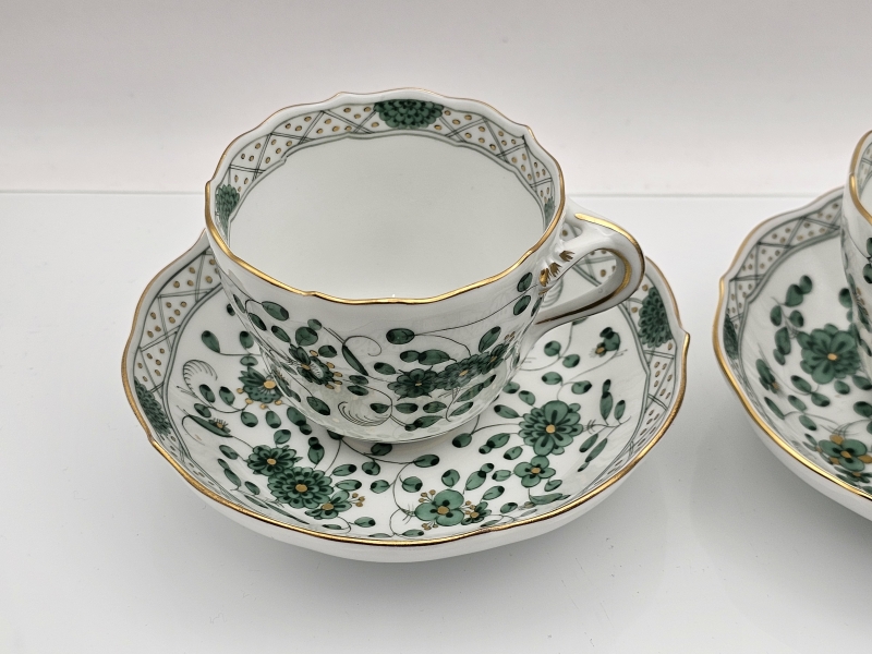#600 2kpl Meissen Indian Green -sarjan kuppeja ja tasseja