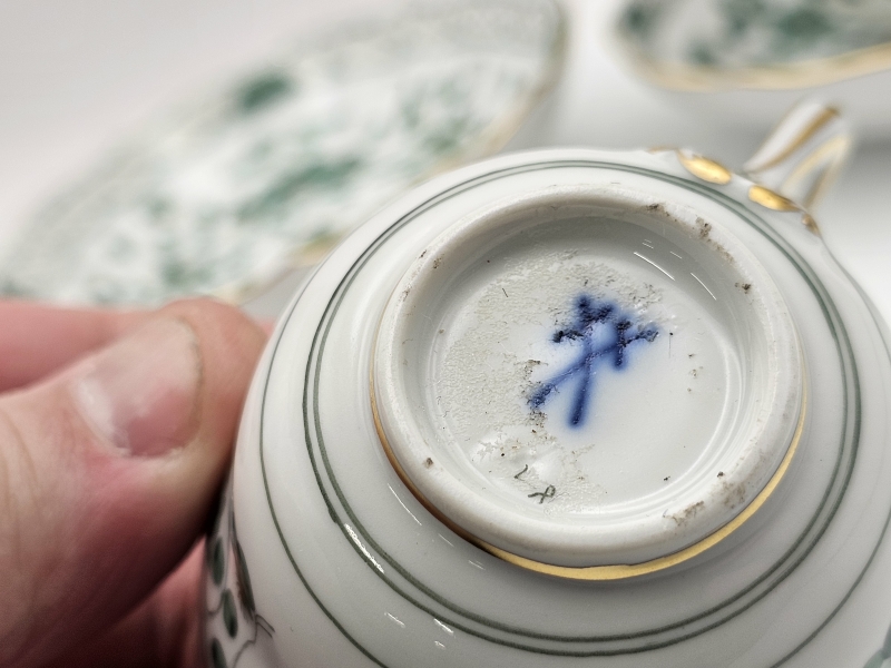 #600 - 2kpl Meissen Indian Green -sarjan kuppeja ja tasseja