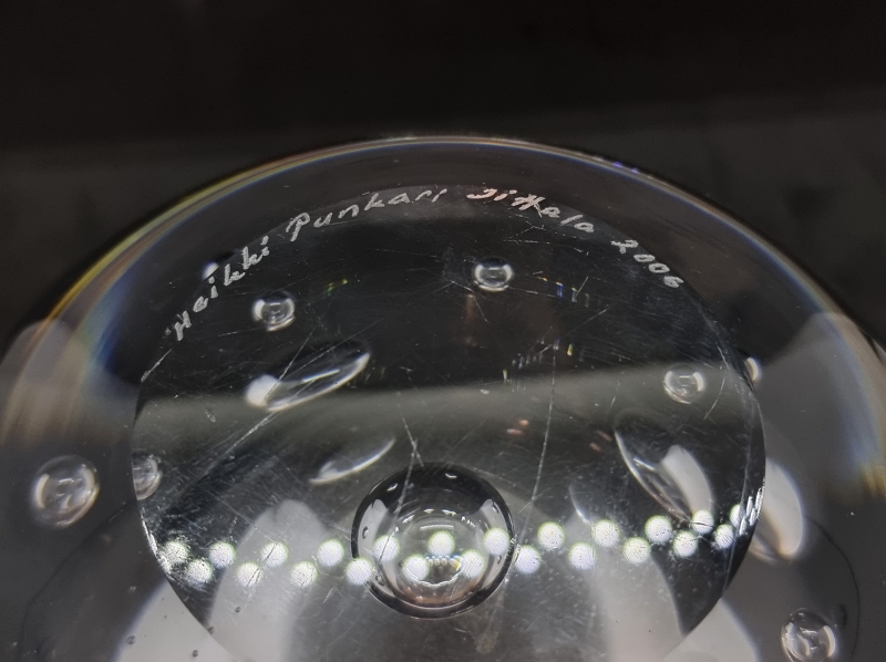 Sisäreunassa kynnellä tuntuva karheus. Signeerattu v. 2006. Halkaisija 17cm