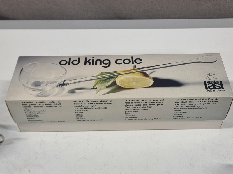 #111 6kpl Tsaikka -laseja + Old King Cole kauha alkuperäispakkauksissa