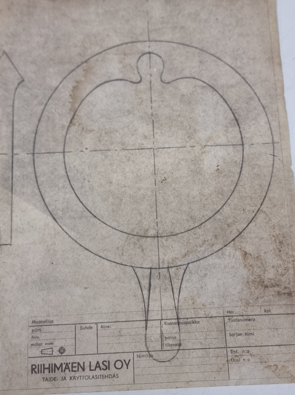 #123 Nanny Still, Riihimäen lasi, alkuperäinen mallipiirros "Jäävesikaadin" 1974