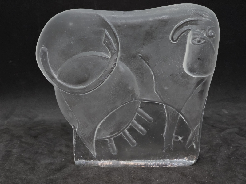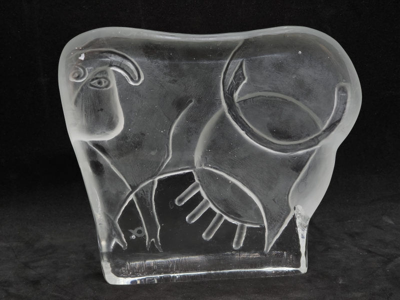 #200 2kpl taidelasiesineitä, mm. Lehmäkoriste