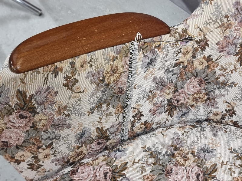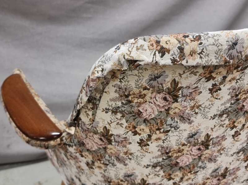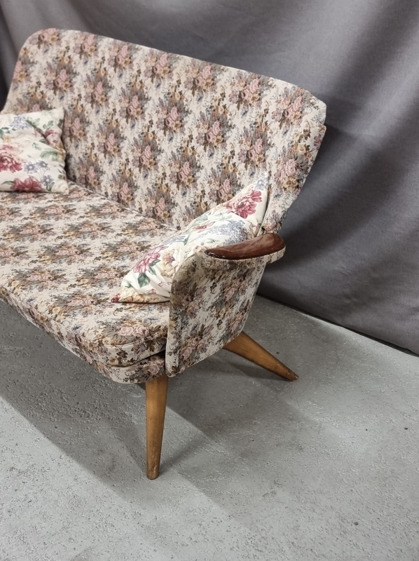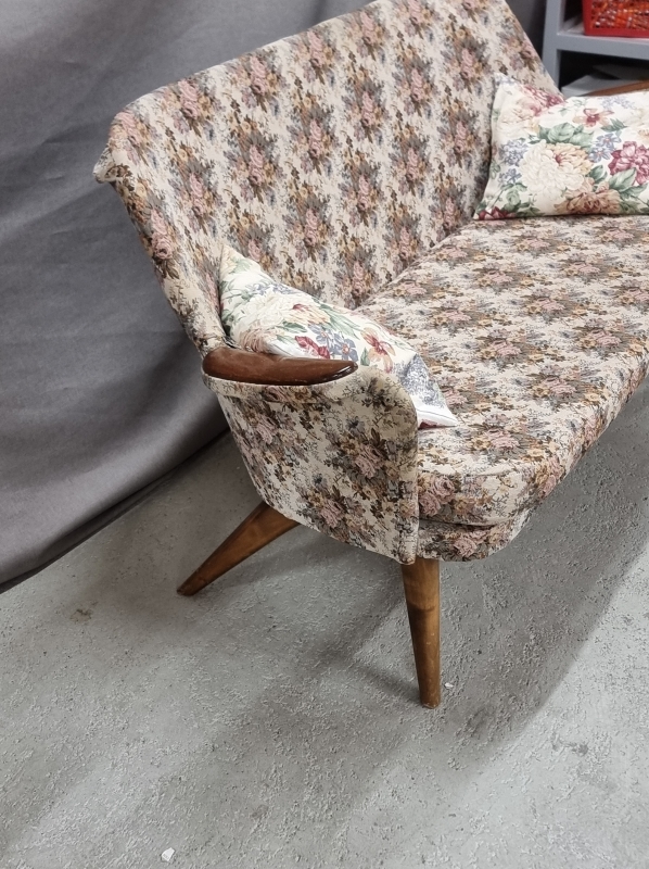 Myöhempi verhoilu. Jaloissa kulumaa. Leveys 142cm, korkeus 78cm