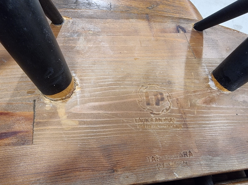 Kulumaa. Tuoleissa leimat, Laukaan puu. 69cm x 120cm, kork. 68cm
