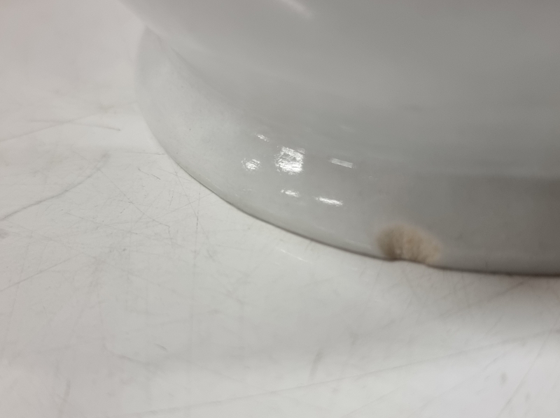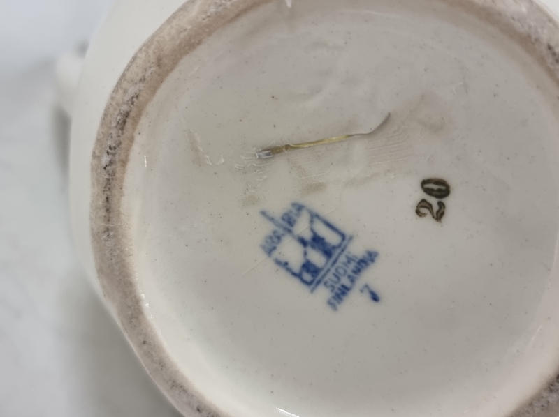 Karjalan pohjassa pala pois, Astor hiushalkeama. Lankamaljassa halkeama. Maljan leveys 25cm.