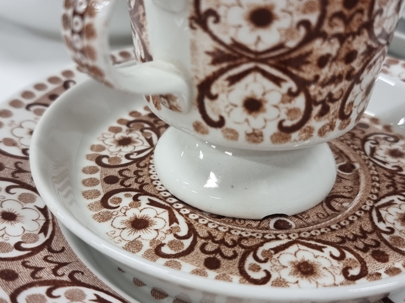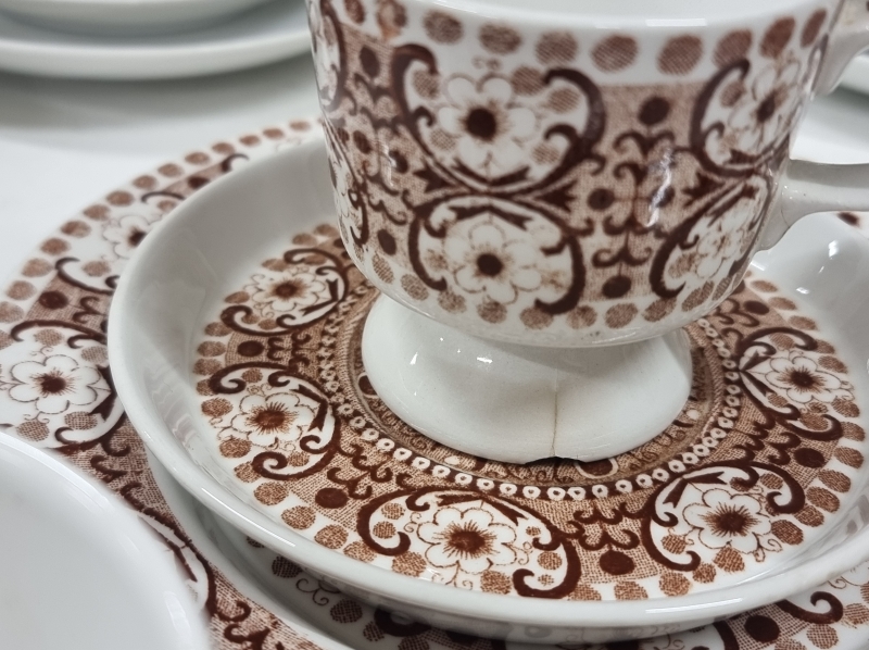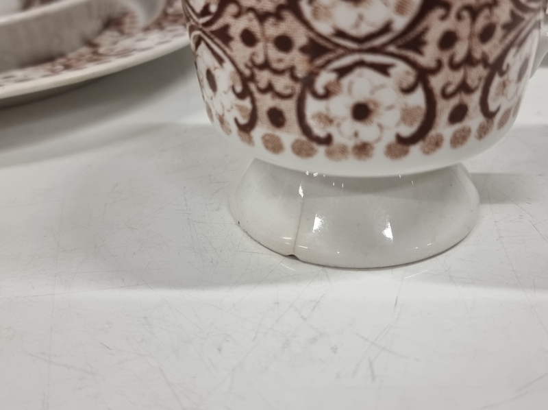 Kolmesta Ali - kupista pala pois, Kruunu - astioissa kulumaa. Isoimman halkaisija 22cm.