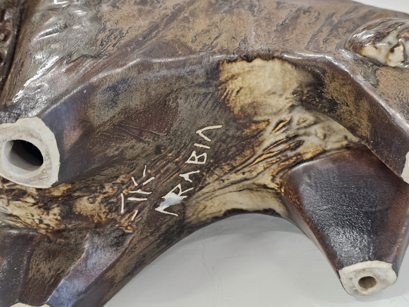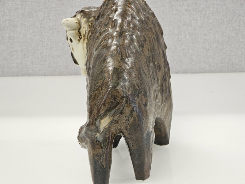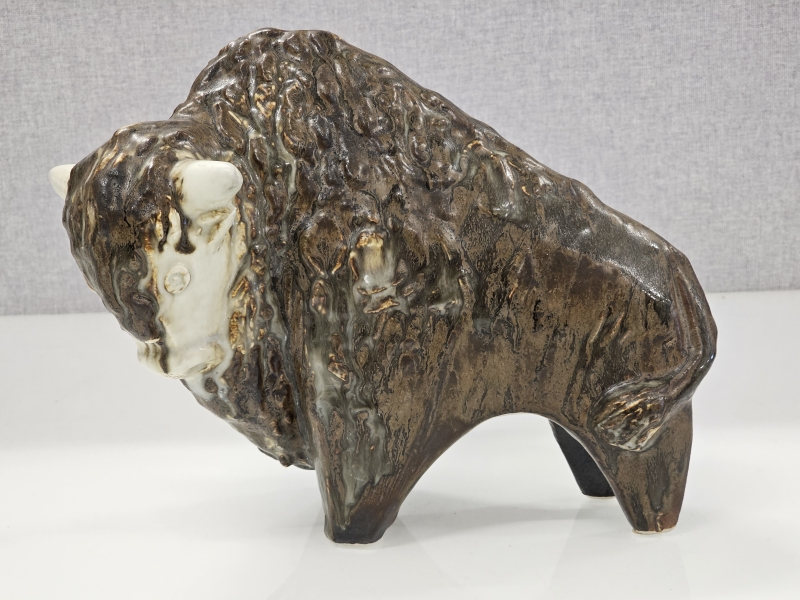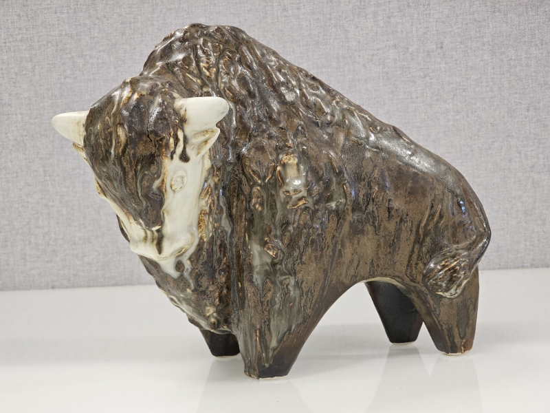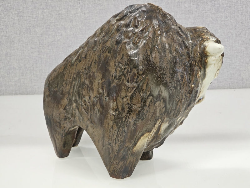 Biisonin päässä vähäistä krakeloitumaa. Pituus 30cm, korkeus 25cm