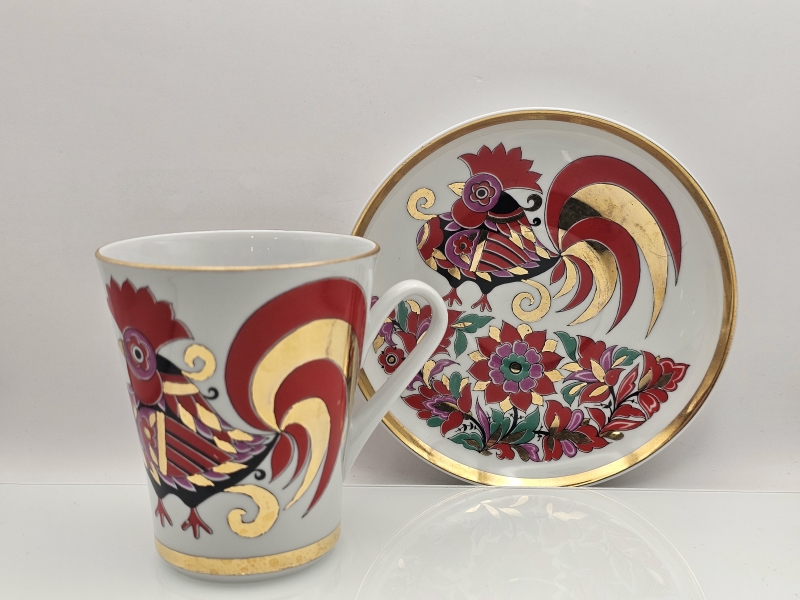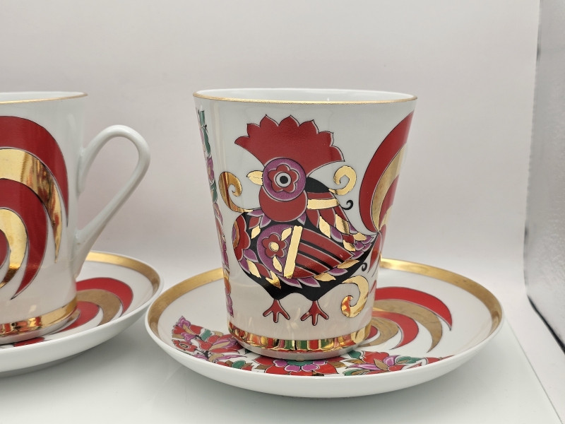 #760 - 2kpl Lomonosov Red Rooster -kuppeja ja tasseja