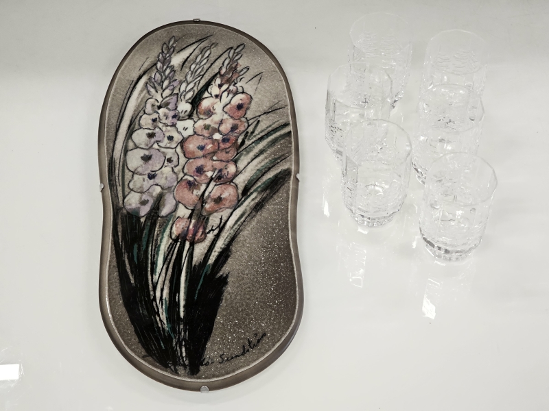 #762 Arabia, Heljä Liukko-Sundström seinäkoriste + 6kpl Vennola Kuusi -laseja