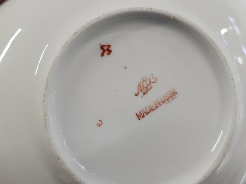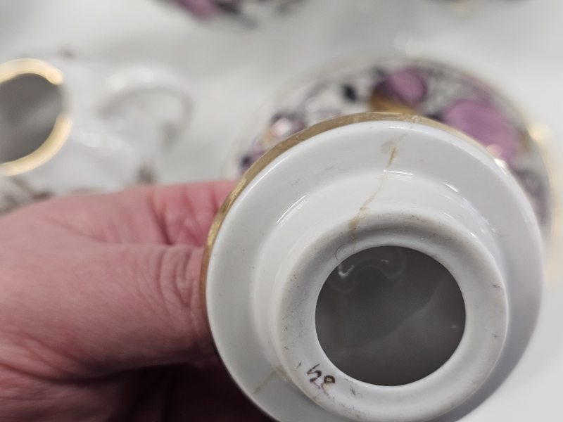 Punaiset sokerikon kansi liimattu, tassissa väreissä kulumaa. Korkein 19,5cm
