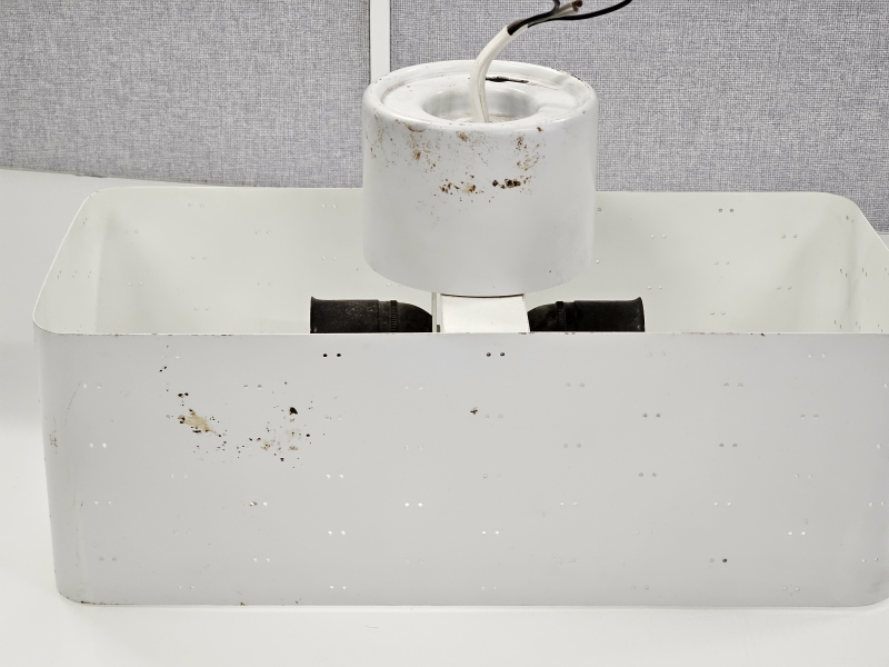 Alaritilä ja lasi puuttuu. Kulumaa. 18,3cm x 40,3cm, k: 22,5cm