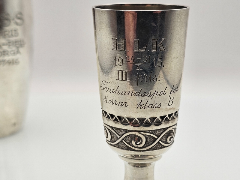 #1025 2kpl hopeisia palkintopokaaleja, 813 ja 900 hopeaa, 125g