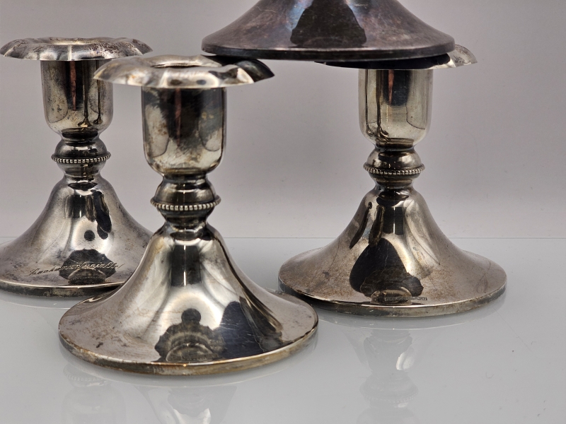 #1028 4kpl hopeisia kynttilänjalkoja, bruttopaino 378g