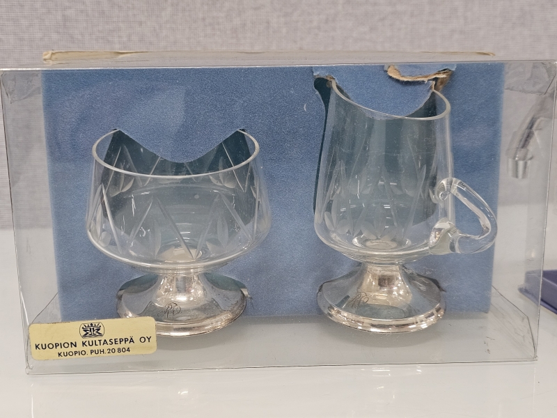 #1029 Hopeinen kynttilänjalka & sokerikko ja kermakko hopeajaloilla