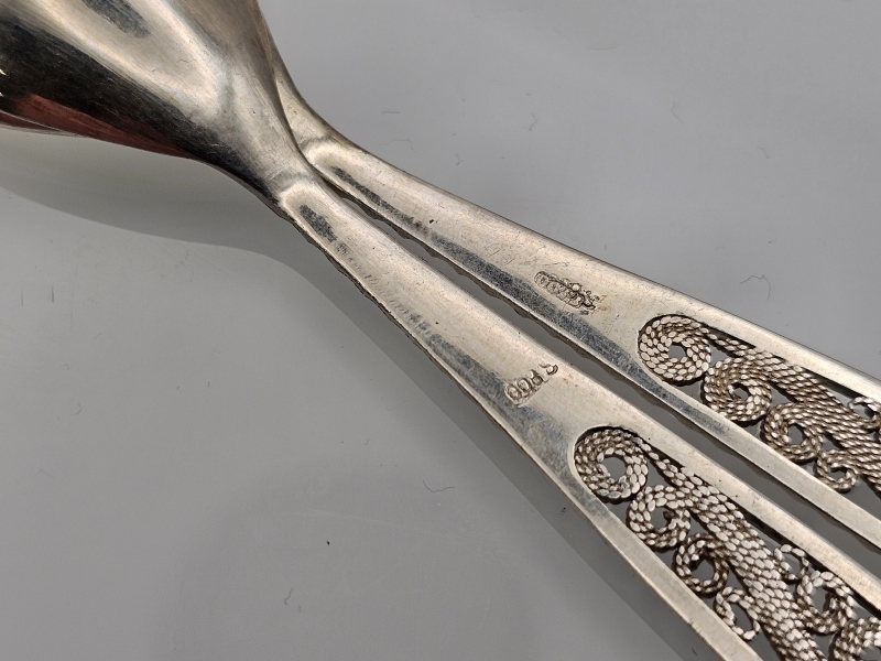 #1039 - 6kpl hopeisia lusikoita filigraanikoristeella, 800h, 65g