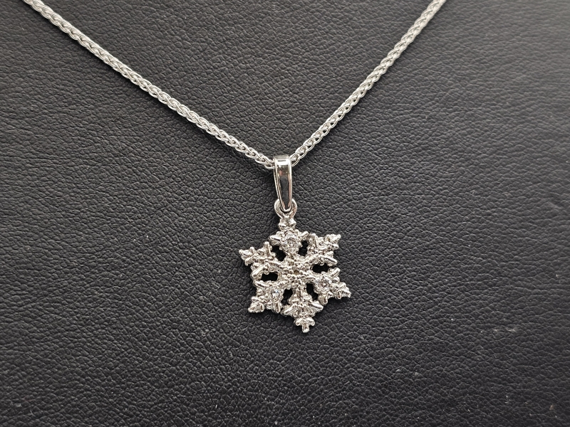 #1048 18k valkokultainen riipus timanteilla, Kari Hirvonen - "Moossina", 1,57g + 14k kultaketju 3,33g