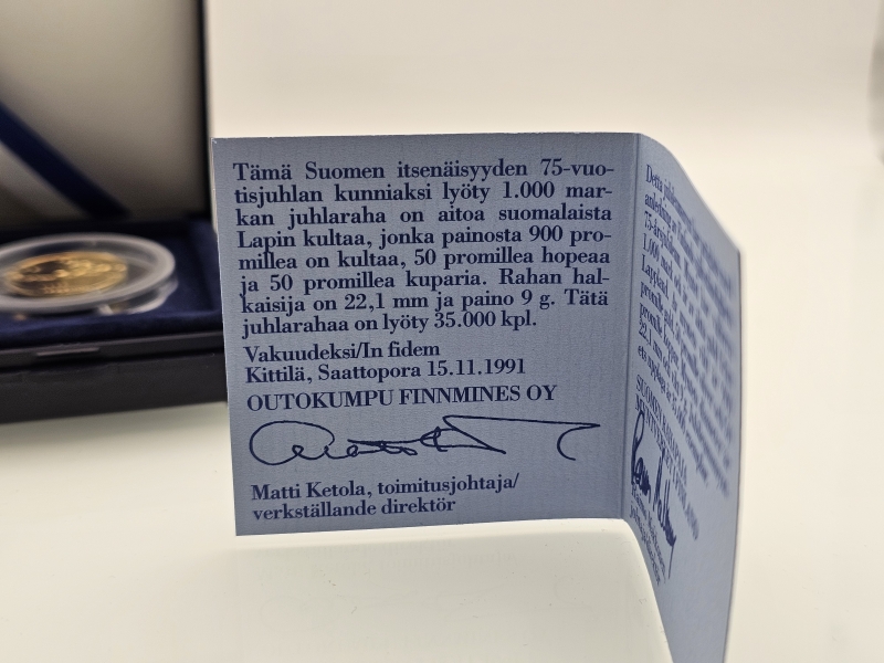 #1060 Kultakolikko: 1000mk Itsenäisyyden 75v juhlaraha, 9g