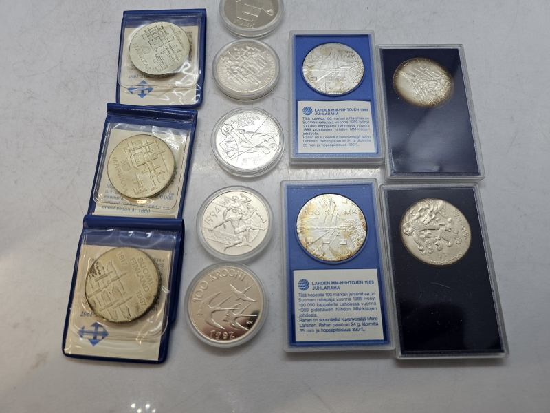 #1079 - Hopeisia juhlarahoja: 3kpl 900h [72g], 2kpl 925h [48g], 5kpl 830h [120g], 2kpl 500h [39,8g]