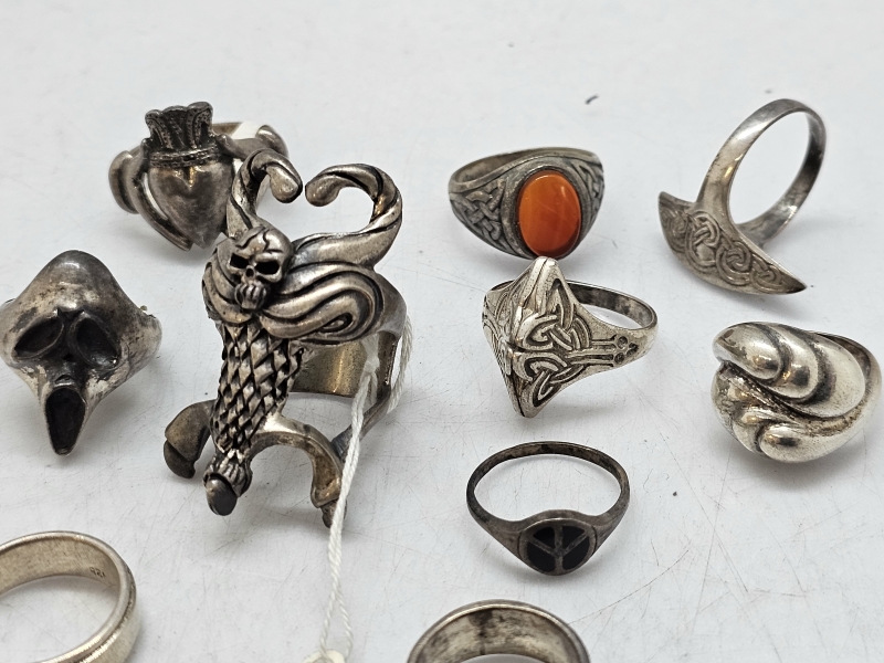 #1213 - 10kpl hopeisia sormuksia, 99g