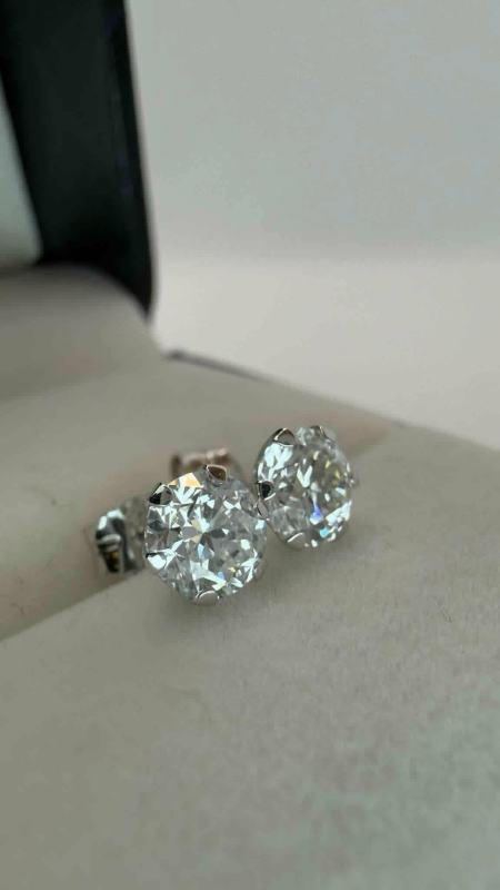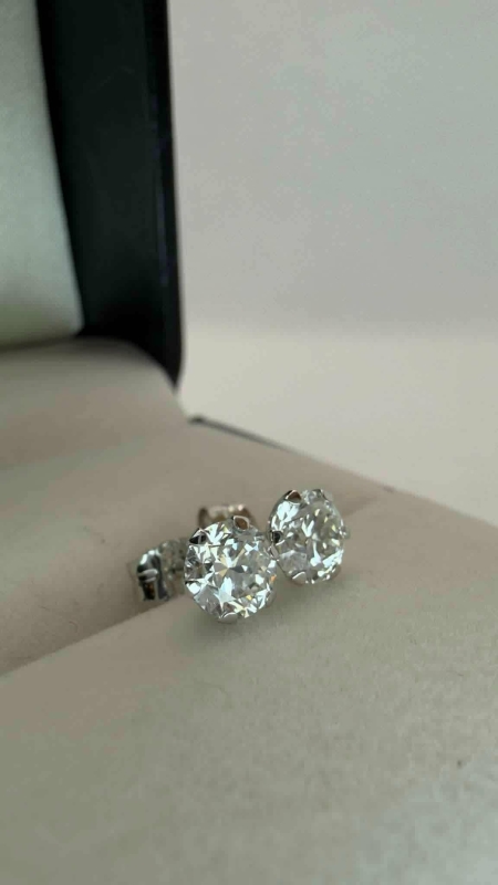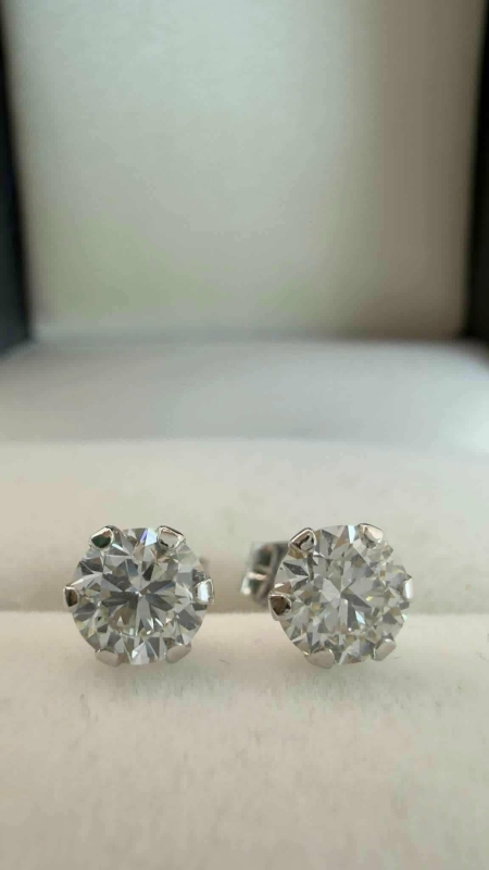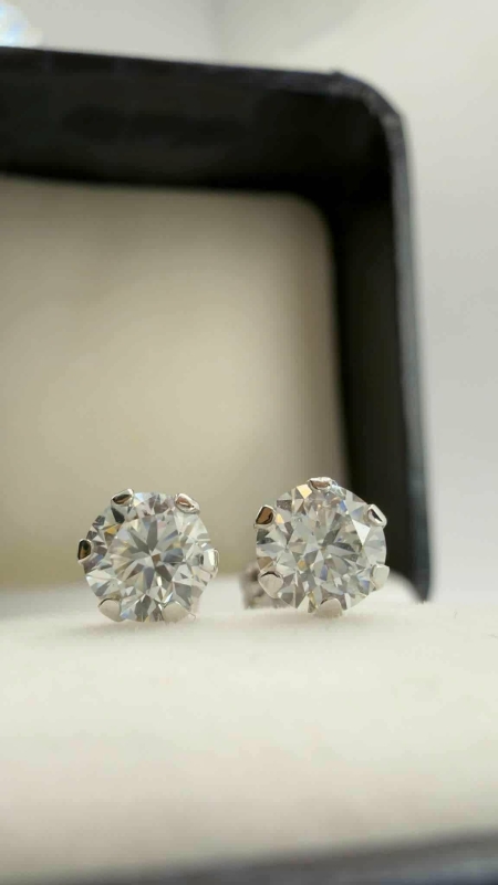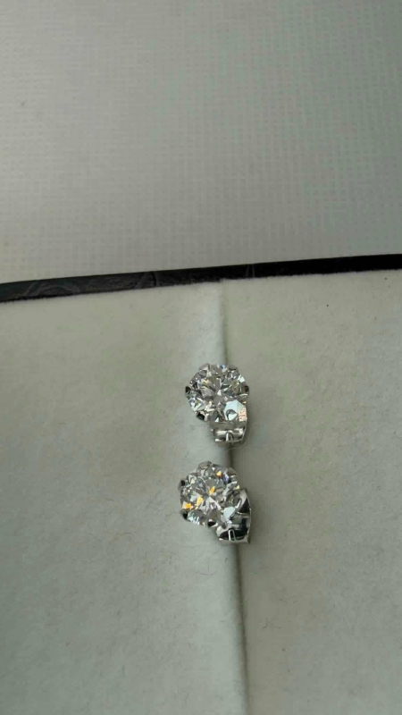 #1207 14k valkokultaiset korvakorut joissa molemmissa 0,50ct E / VVS2 timantit, 0,7g