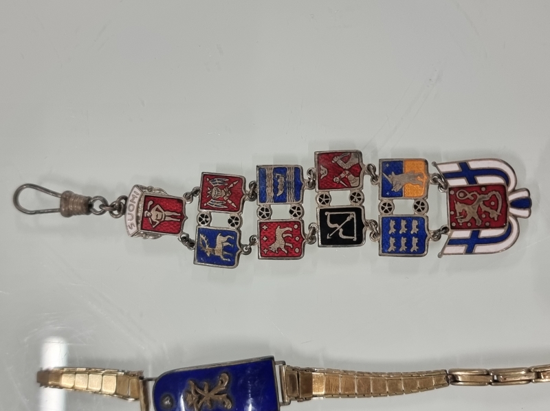 #1651 - Uudenmaan rakuuna rykmentin ranneke, kellonperät ja S.U.L. hopeinen merkki