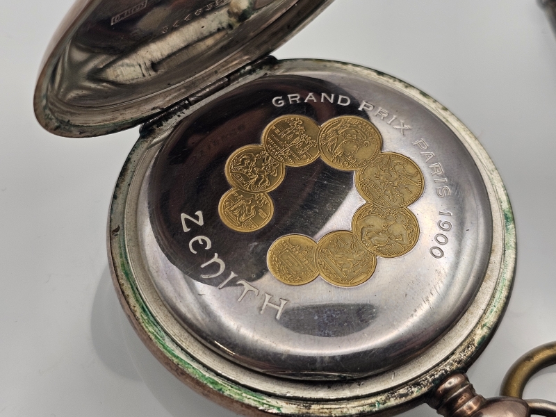 #1092 Hopeinen Zenith taskukello + perät