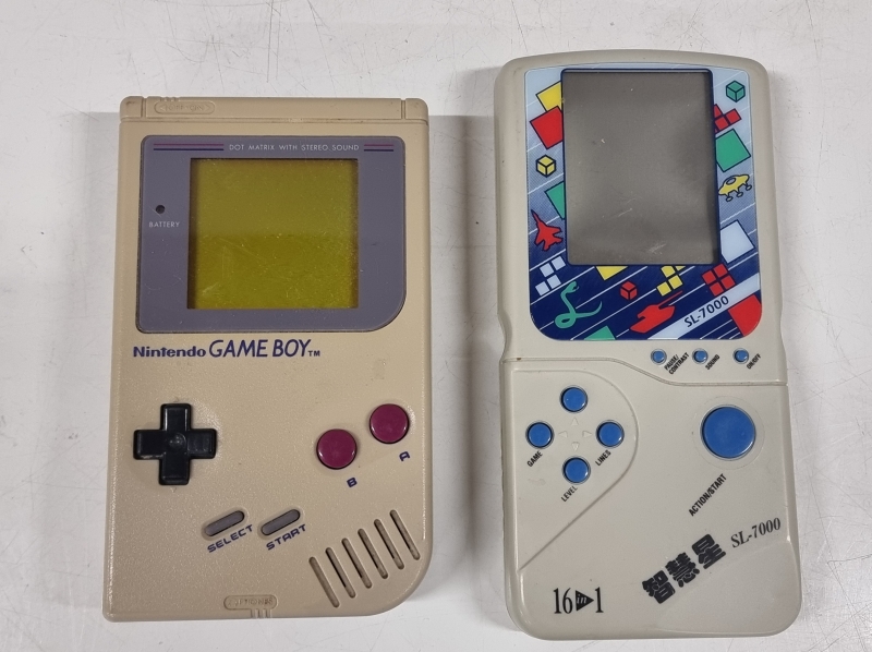 #2206 2kpl käsikonsoleita: Nintendo Game Boy ja SL7000 + kaksi peliä