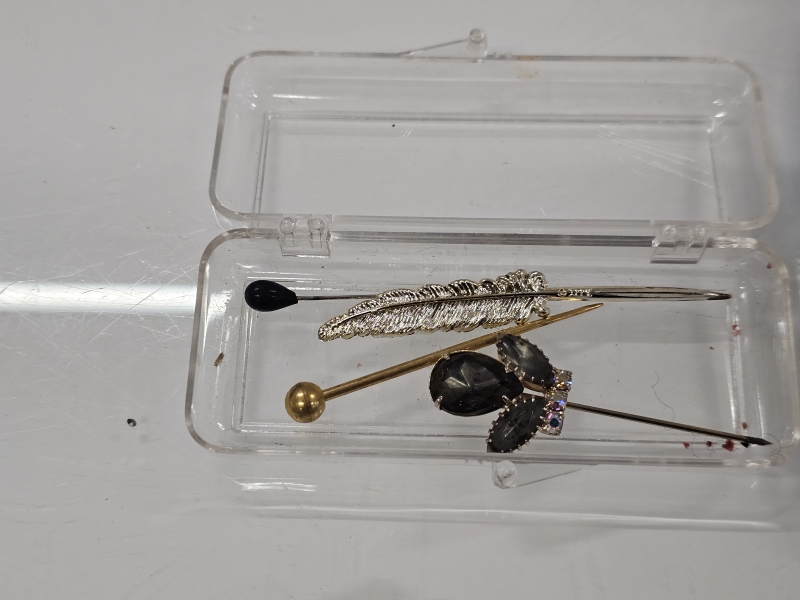 #1148 Erä vanhoja koruja: Mm. hattuneuloja, rintaneuloja