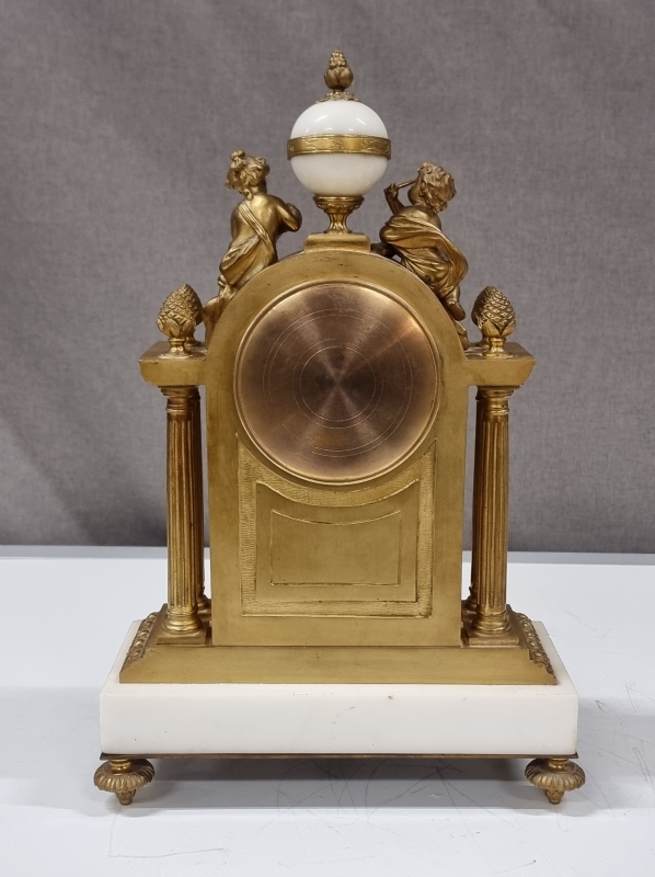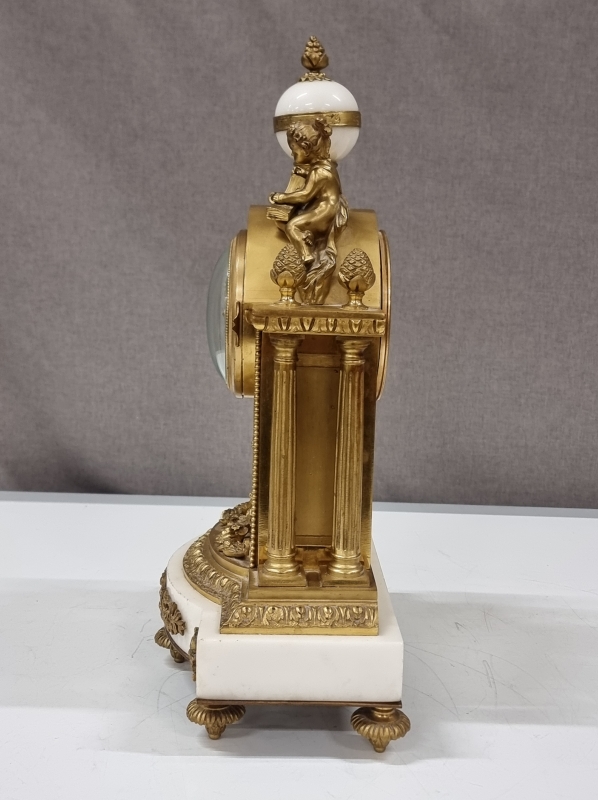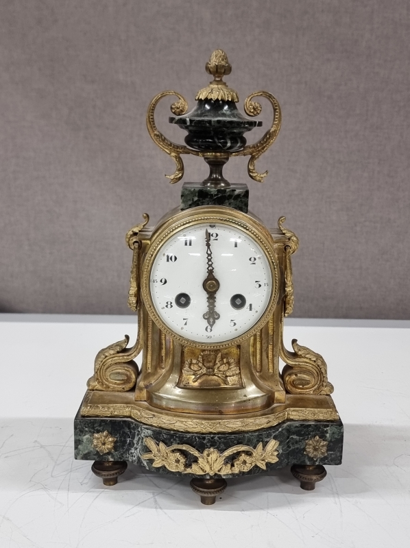 #2008 Antiikkinen pöytäkello kivi/metallijalustalla