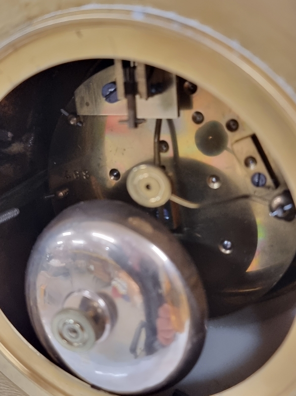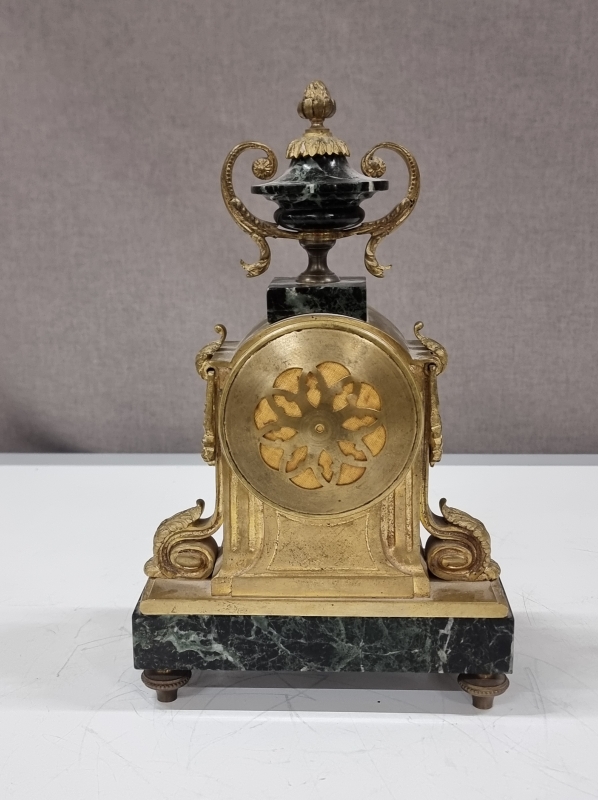 #2008 - Antiikkinen pöytäkello kivi/metallijalustalla