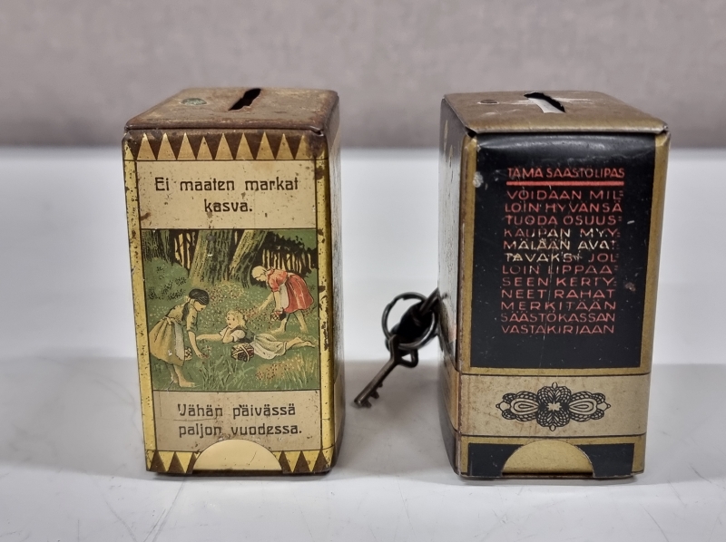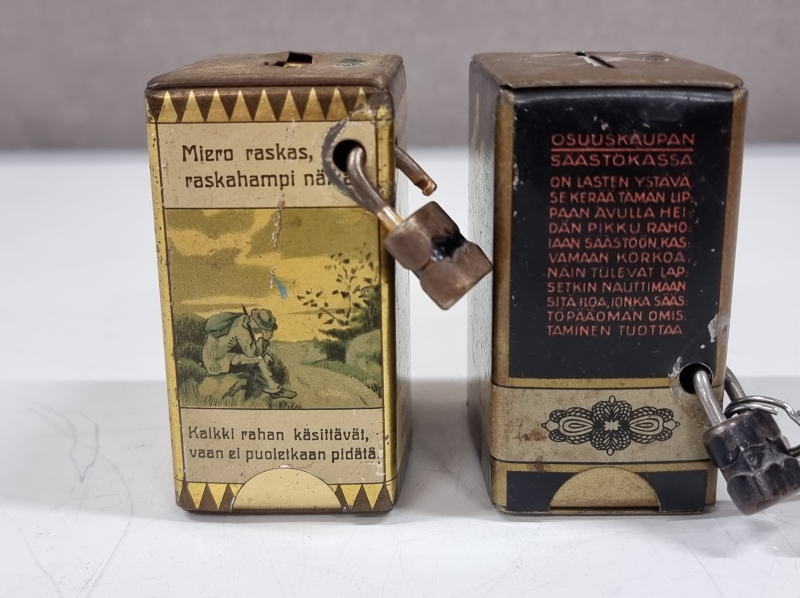 #2012 2kpl vanhoja säästölippaita valmistaja G.W. Sohlberg Ab