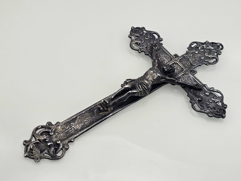 #1173 Hopeinen krusifiksi seinäripustimella, 830h, 113g