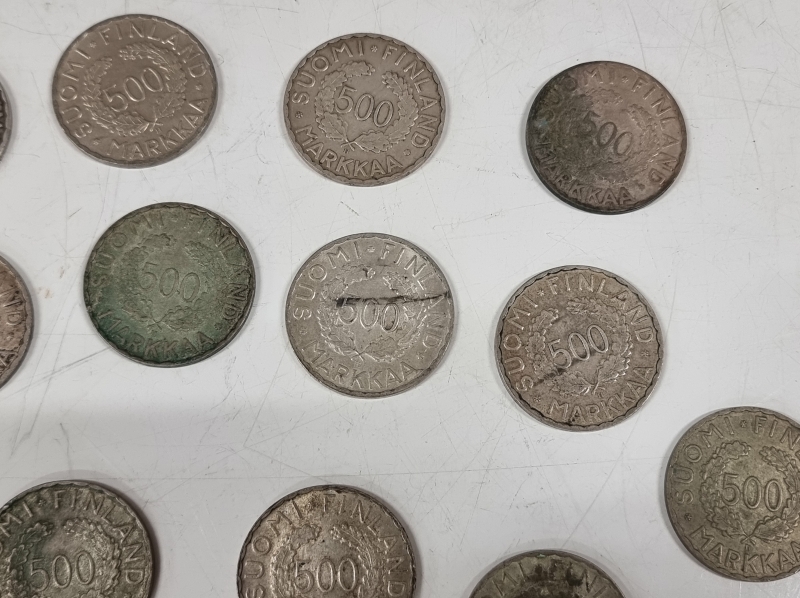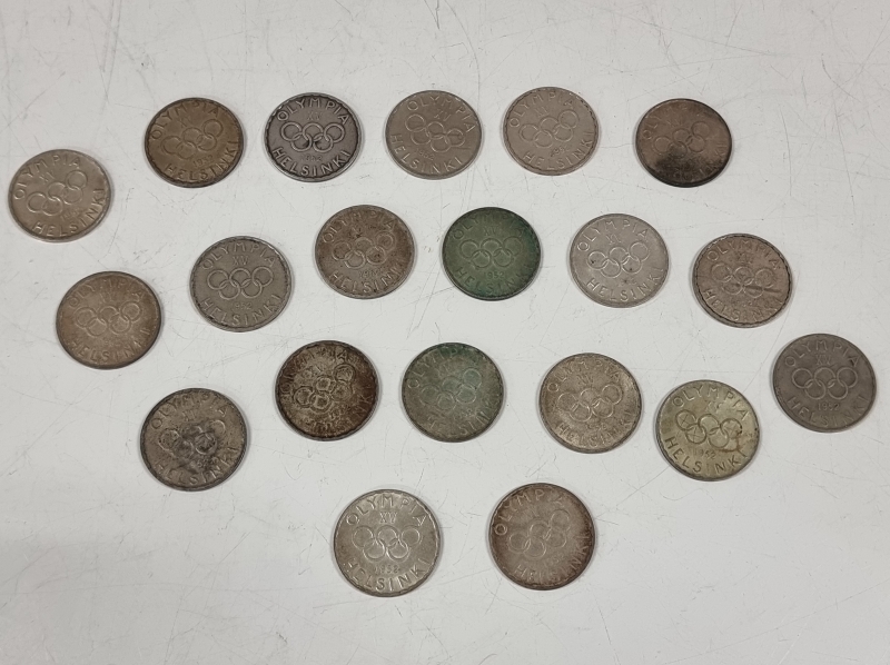 #1210 20kpl Helsingin olympialaisten hopeisia juhlarahoja v. 1952. 500h, 240g