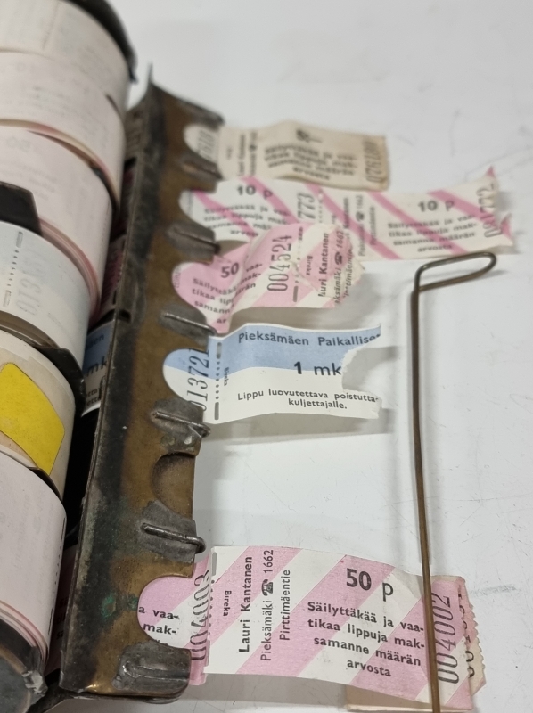 #2214 2kpl vanhoja linja-auton lipunmyyjän lippukoteloita