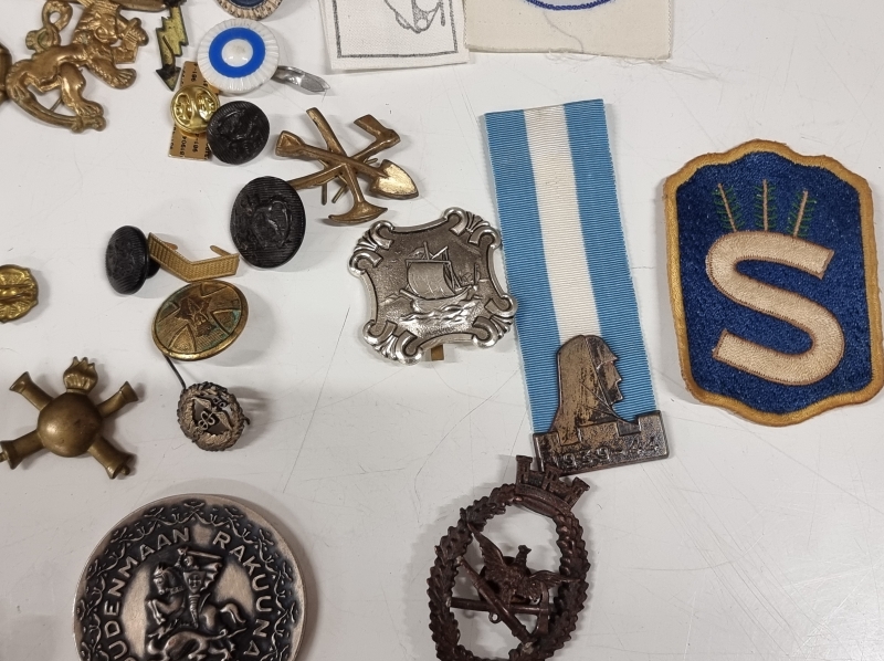 Mm. Suojeluskunnan hihakilpi, palokunnan merkki, Uudenmaan rakuunoitten mitali