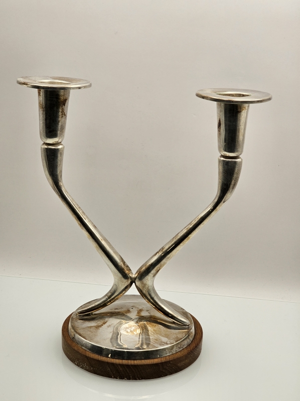 #1216 - Hopeinen kynttilänjalka puujalustalla, br. 265g