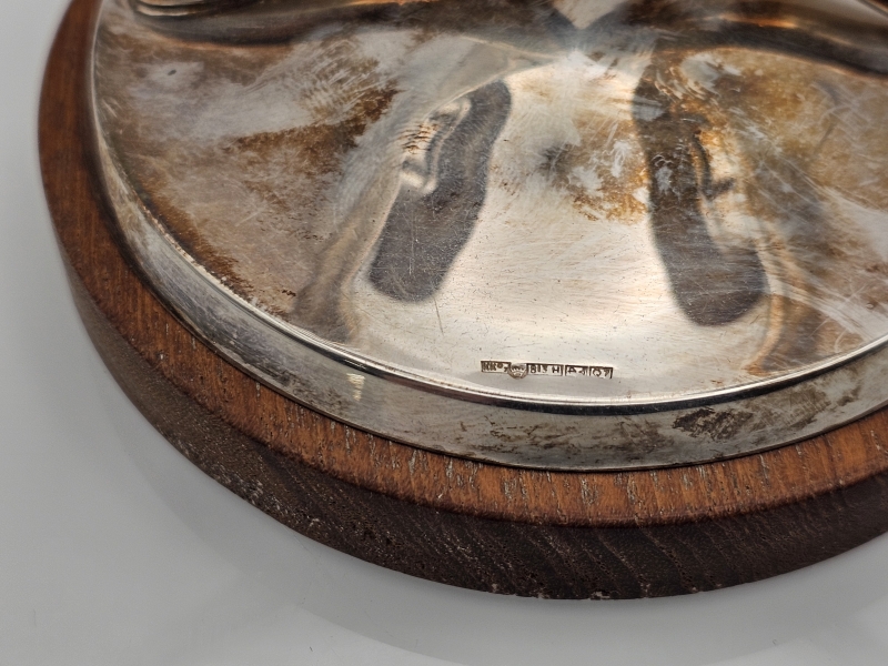 #1216 Hopeinen kynttilänjalka puujalustalla, br. 265g