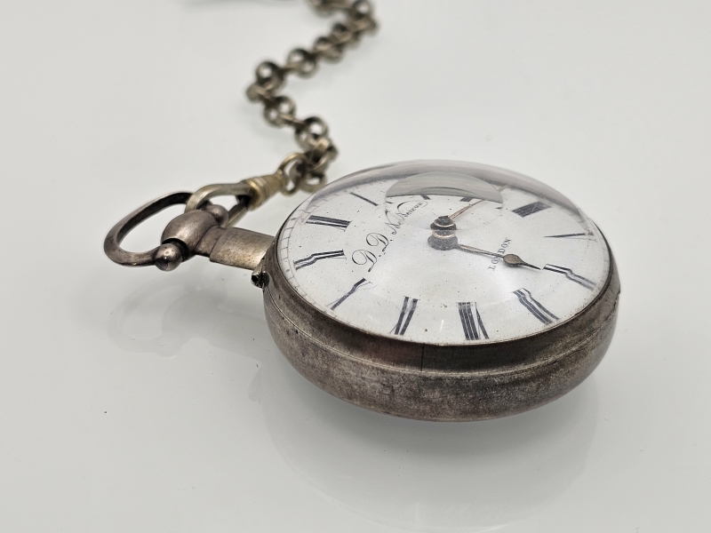 #1222 - Taskukello: Hopeinen D.D.Neveren, 1700-luvun loppu