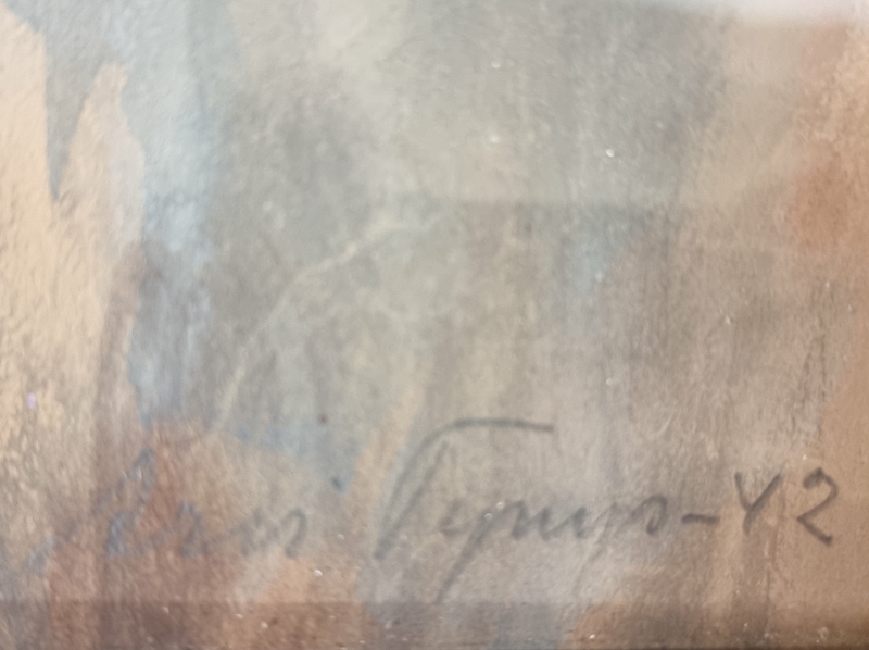 Toinen sign. Toisessa repeämä. 1942. Kehyksineen 35,5cm x 43cm