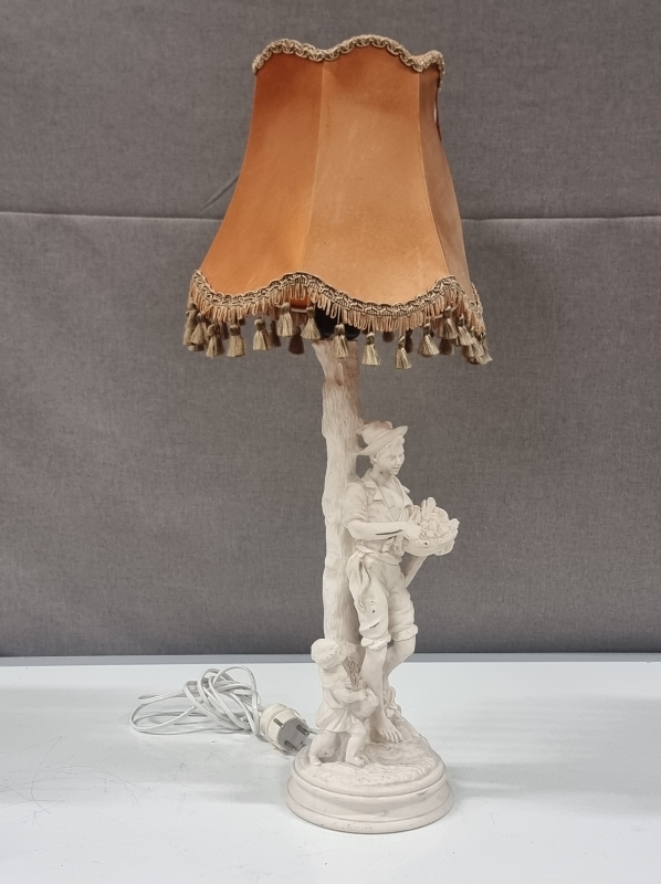 Valaisimessa jälkiä, varjostimessa vikaa, patsaassa korjaus. Korkeampi 65cm