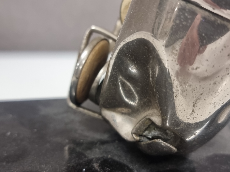 Toimiva, kolhuja, suukappale puuttuu. Korkeus 59cm. Polttimo ei kuulu kauppaan.