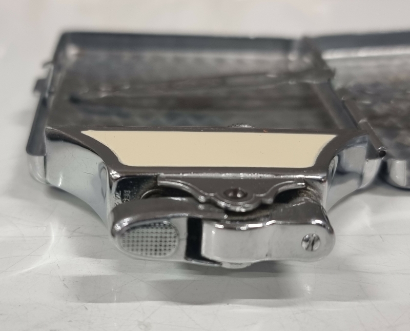 #2225 - 3kpl esineitä: Matkavalokuvakehys, Ronson tupakkarasia/sytytin + paperiveitsi